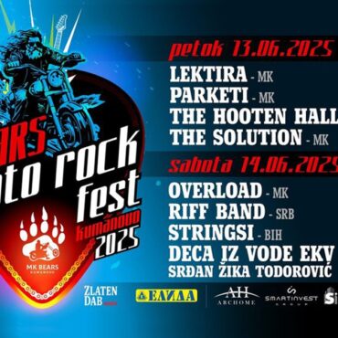 Рок бендот „Riff” од српскиот град Чичевац е атракција во самиот поим и основа, затоа што него го сочинуваат таткото, Симо Тегелтија и двајцата синови, рокери – Илија Тегелтија (постариот) и Петар Тегелтија (помладиот син), кои во сабота на 14 јуни ќе свират на „Беарс Мото рок фест 2025“ во Куманово. „Riff“, ќе се појават како втори од четирите групи – изведувачи таа вечер, а она што е познато за […]